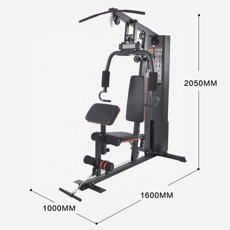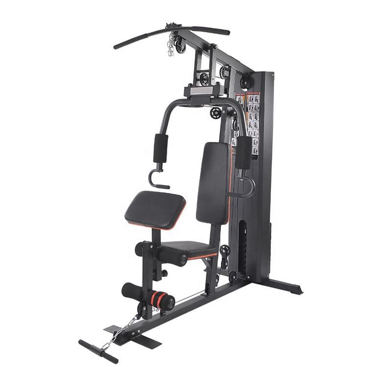 Multiples postes d’exercices : tirage haut, développé, presse, extension, abdominaux, etc.